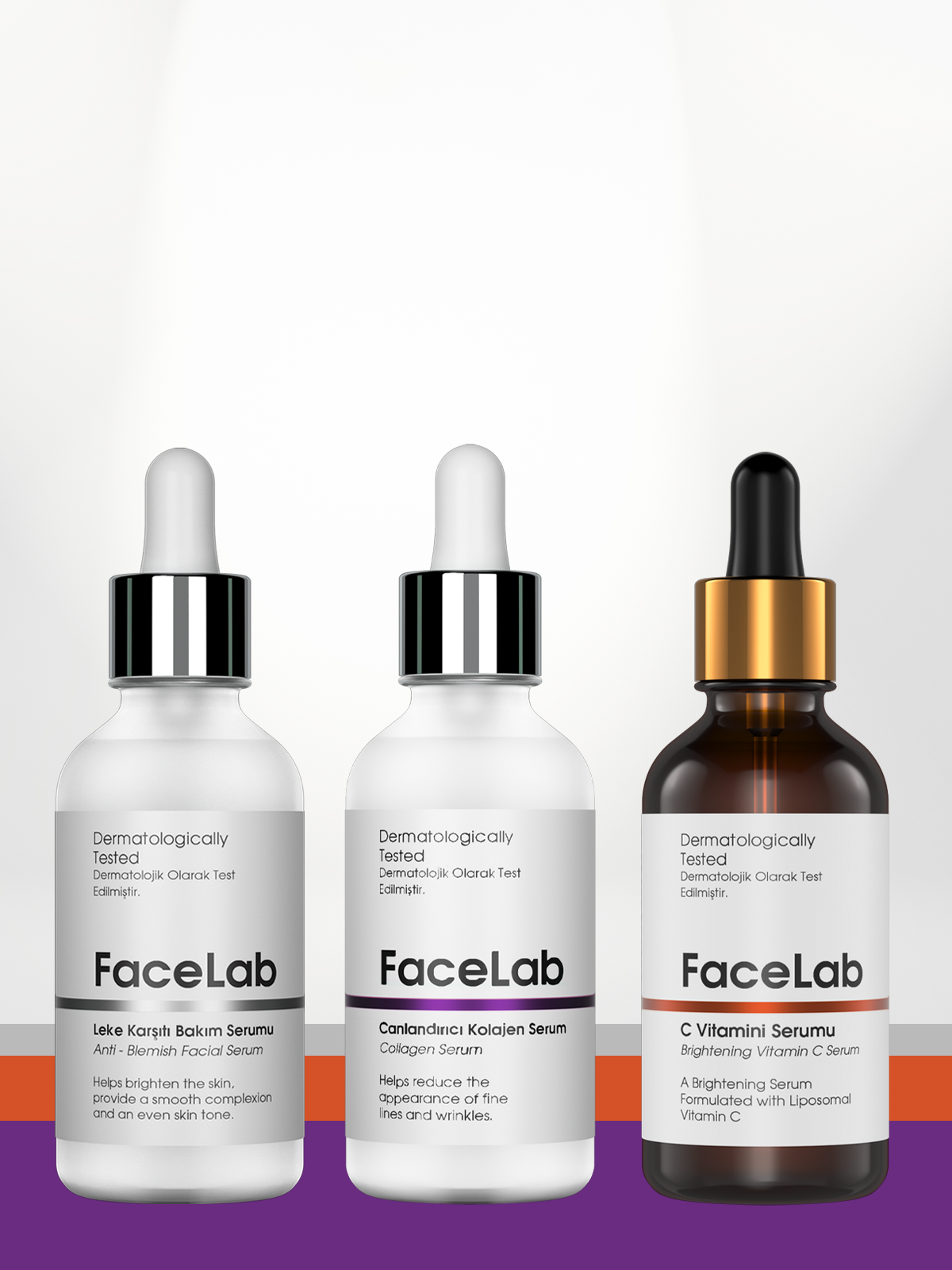 FaceLab 3'lü Cilt Bakım Seti - C Vitamini Serumu + Kolajen Serumu + Leke Karşıtı Serum