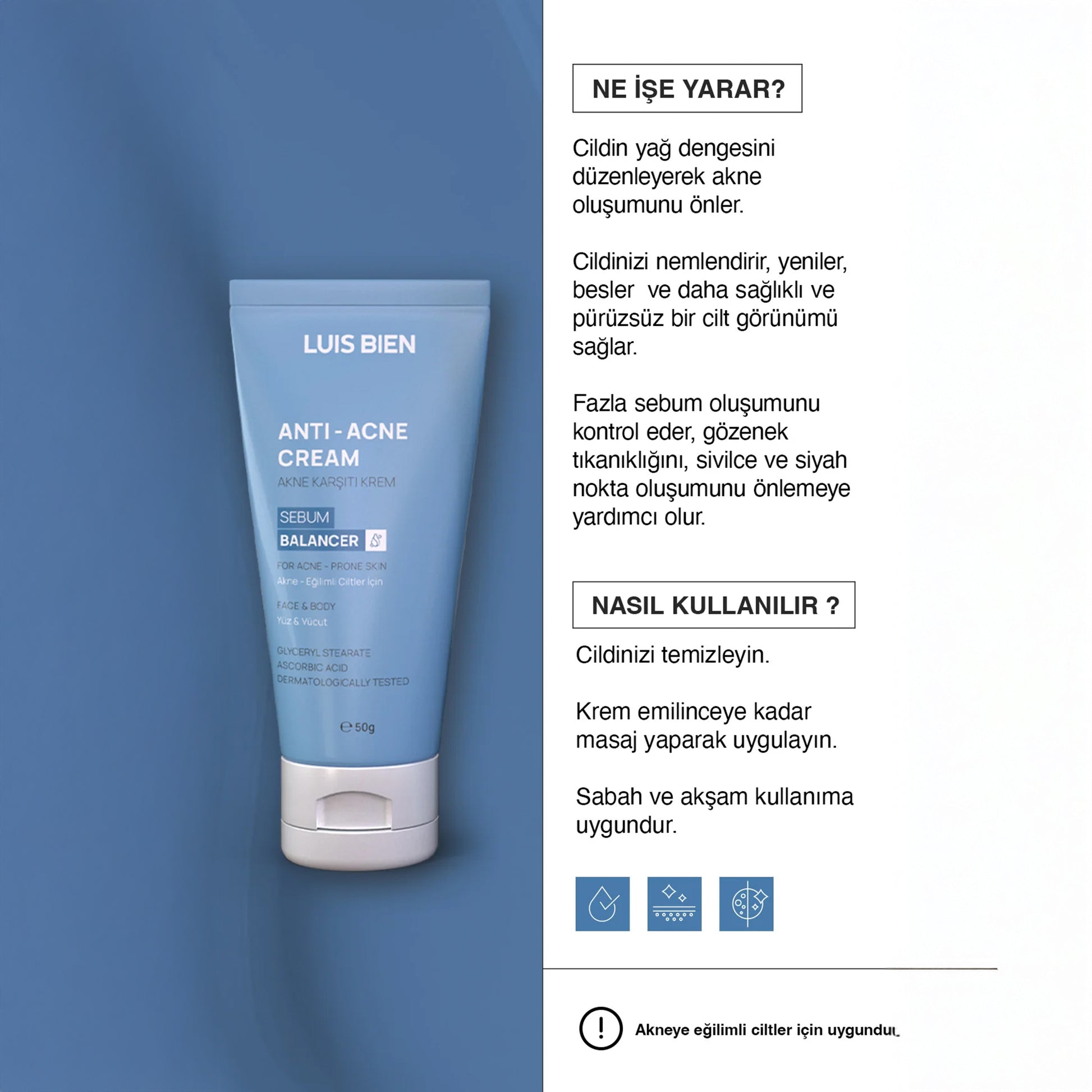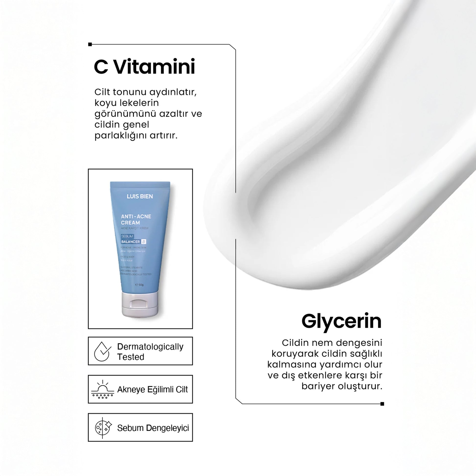 Daha temiz, dengeli ve nemlenmiş bir cilt için Luis Bien Sivilce Kremi’ni günlük rutininize ekleyin. Hızlı emilen, etkili ve doğal formülüyle cildinizde fark yaratır.