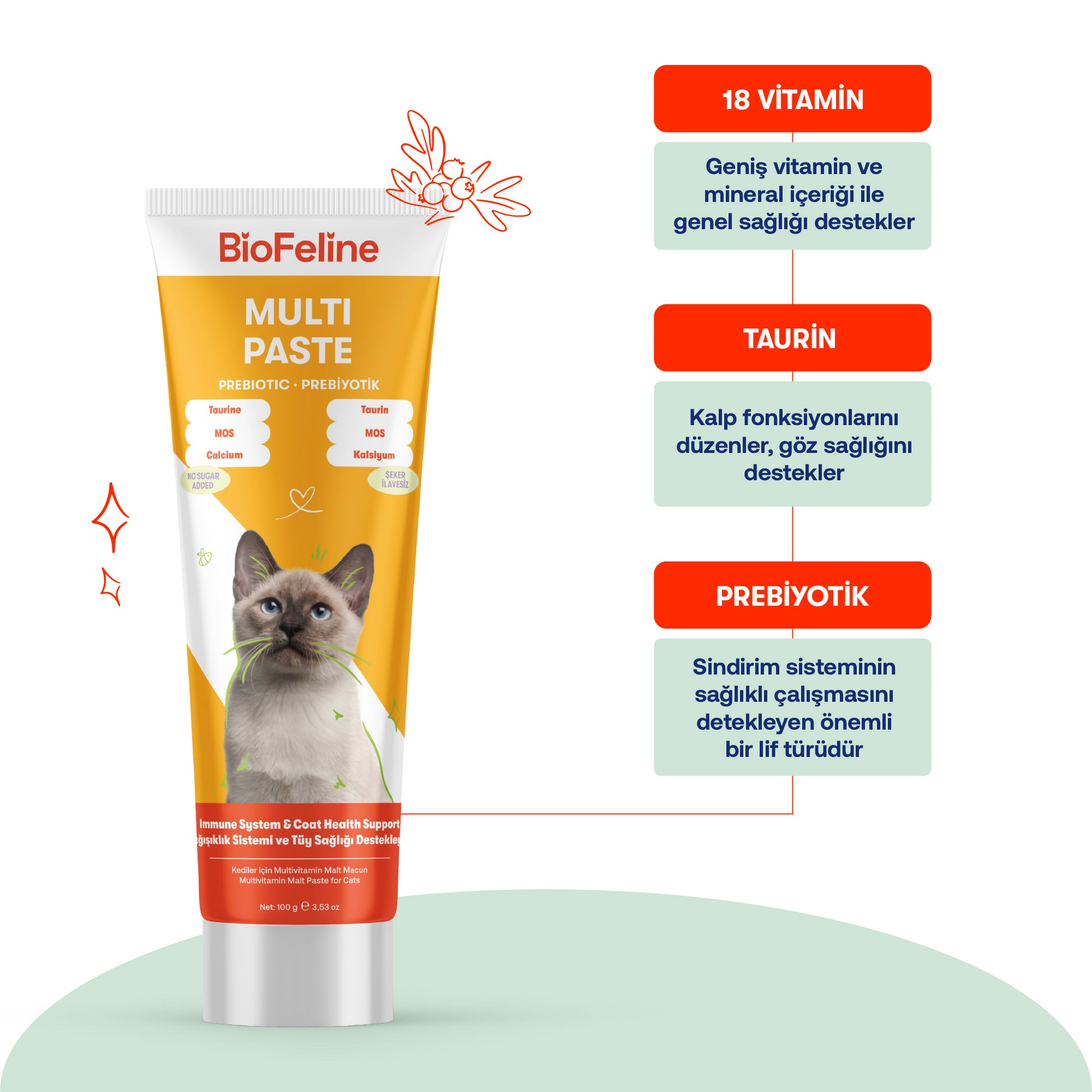 kedi bağışıklık desteği - BioFeline Bağışıklık Düşüklüğü ve Halsizlik Azaltıcı Kediler İçin Multivitamin Destek Seti