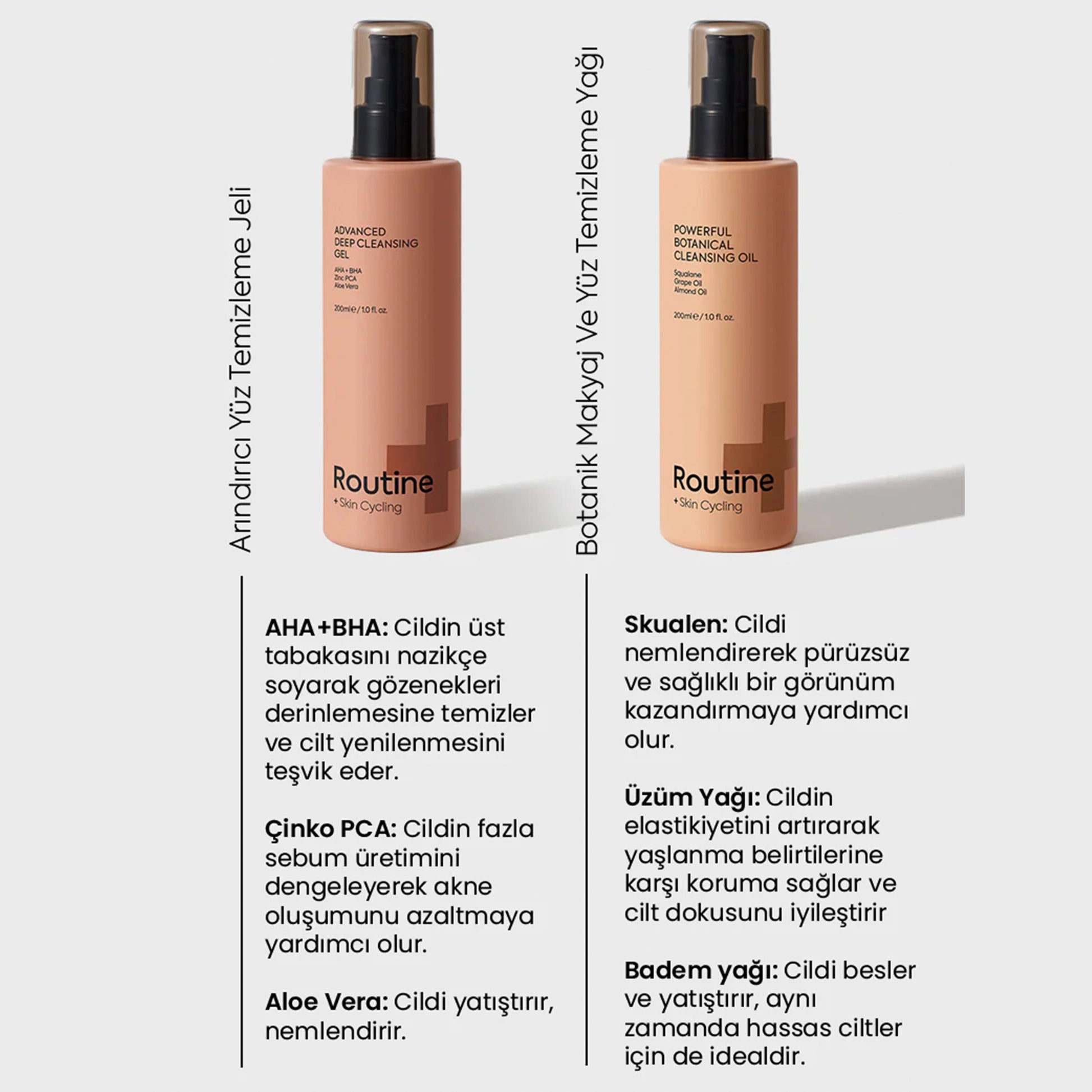 Advanced Deep Cleansing Gel, cildin aşırı yağını ve ölü cilt hücrelerini etkili bir şekilde temizleyerek, cildin doğal bariyerine zarar vermeden derinlemesine temizlik sağlar. Formülünde yer alan AHA+BHA, Çinko PCA ve Aloe Vera sayesinde, pürüz ve geniş gözeneklerin oluşmasını önlemeye yardımcı olur. Bu jel temizleyici, cildin doğal pH seviyesine en yakın olan pH değeri ile formüle edilmiştir, bu nedenle cildi kurutmadan ve doğal yağlarından arındırmadan temizler. Aynı zamanda SLES içermeyen yumuşak ve kremsi dokusuyla çok yönlü bir temizleyicidir. Cildinizdeki sebum üretimini kontrol eder ve gözeneklerdeki kirlerden temizleyerek, daha berrak ve pürüzsüz bir cilt görünümü sağlar. Dermatologlarla birlikte formüle edilmiş Advanced Deep Cleansing Gel temizleyici, cildinizi taze, nemli ve pürüzsüz görünmesine yardımcı olur.