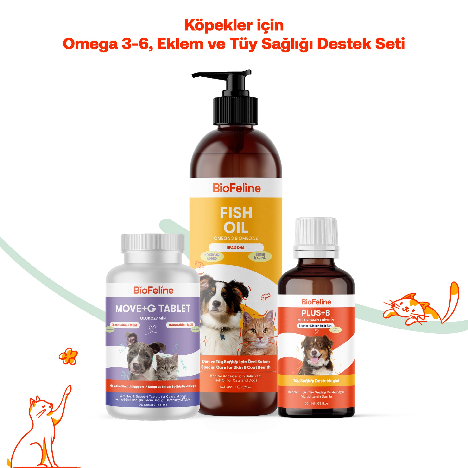 köpek eklem desteği seti - BioFeline Eklem Hareketliliği ve Tüy Sağlığı Destekleyici Köpekler İçin Omega & Glukozamin Tablet Seti