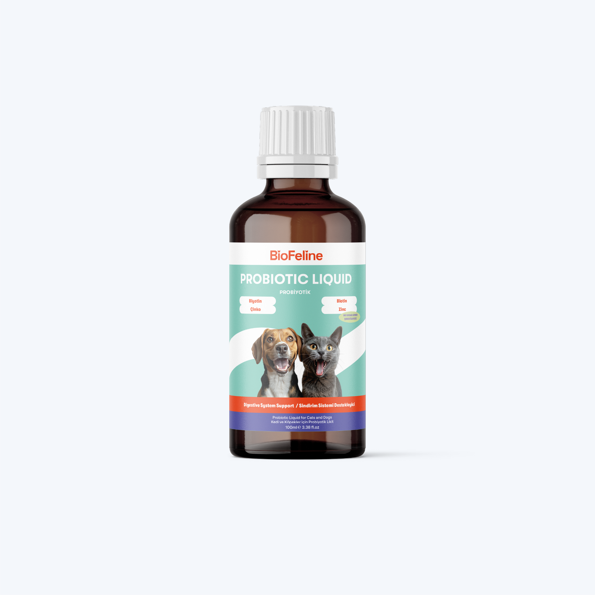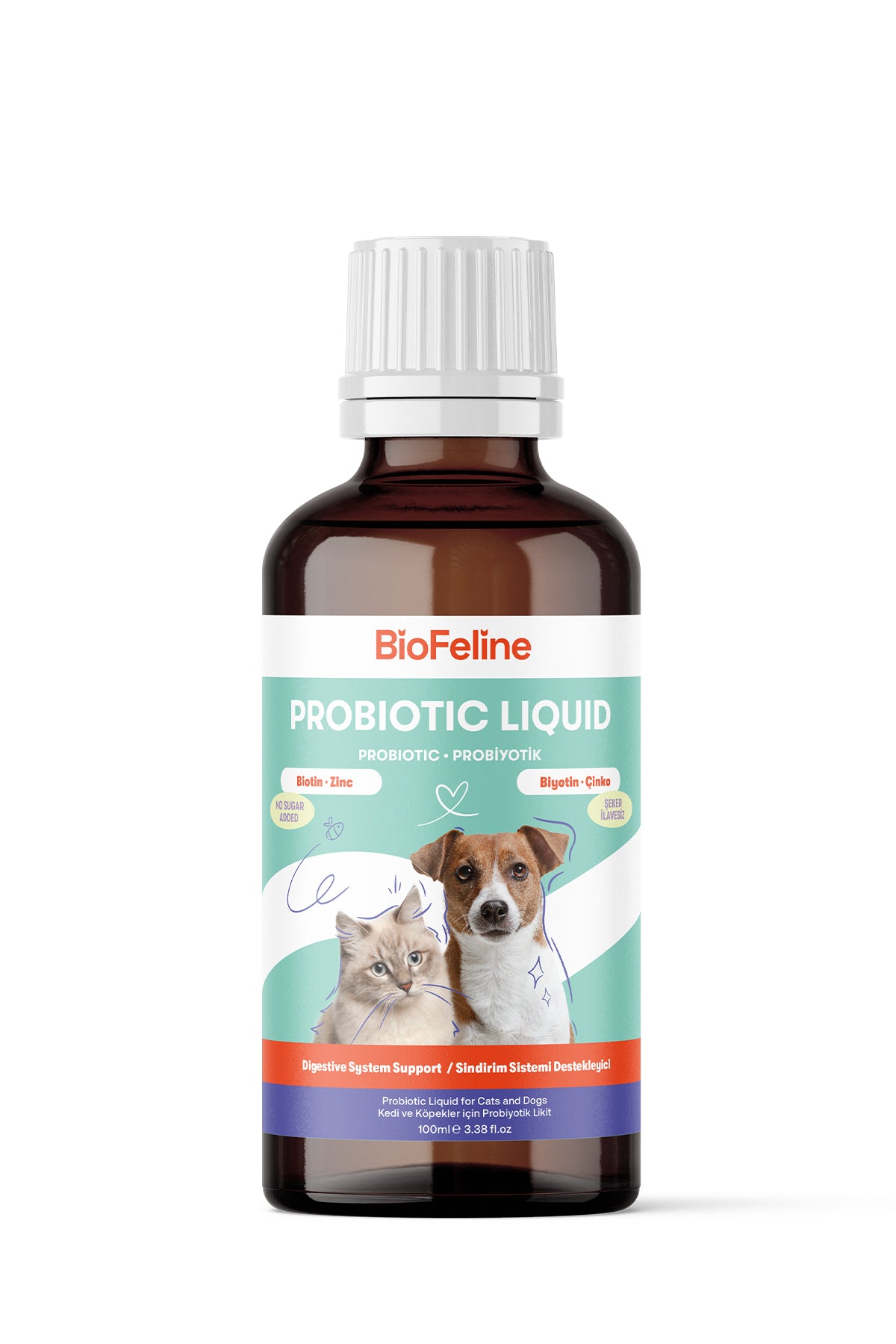 Biofeline Sıvı Probiyotik, kedi ve köpeklerin sindirim sistemi ve bağışıklık sağlığını desteklemek için özel olarak geliştirilmiş bir formüldür. Probiyotik ve prebiyotik bakteriler, vitaminler ve sindirim enzimleri ile bağırsak florasını dengeler, sindirim sistemini düzenler ve genel sağlığı destekler. Düzenli kullanımda ishal, kabızlık ve sindirim bozukluklarını önlemeye yardımcı olur.