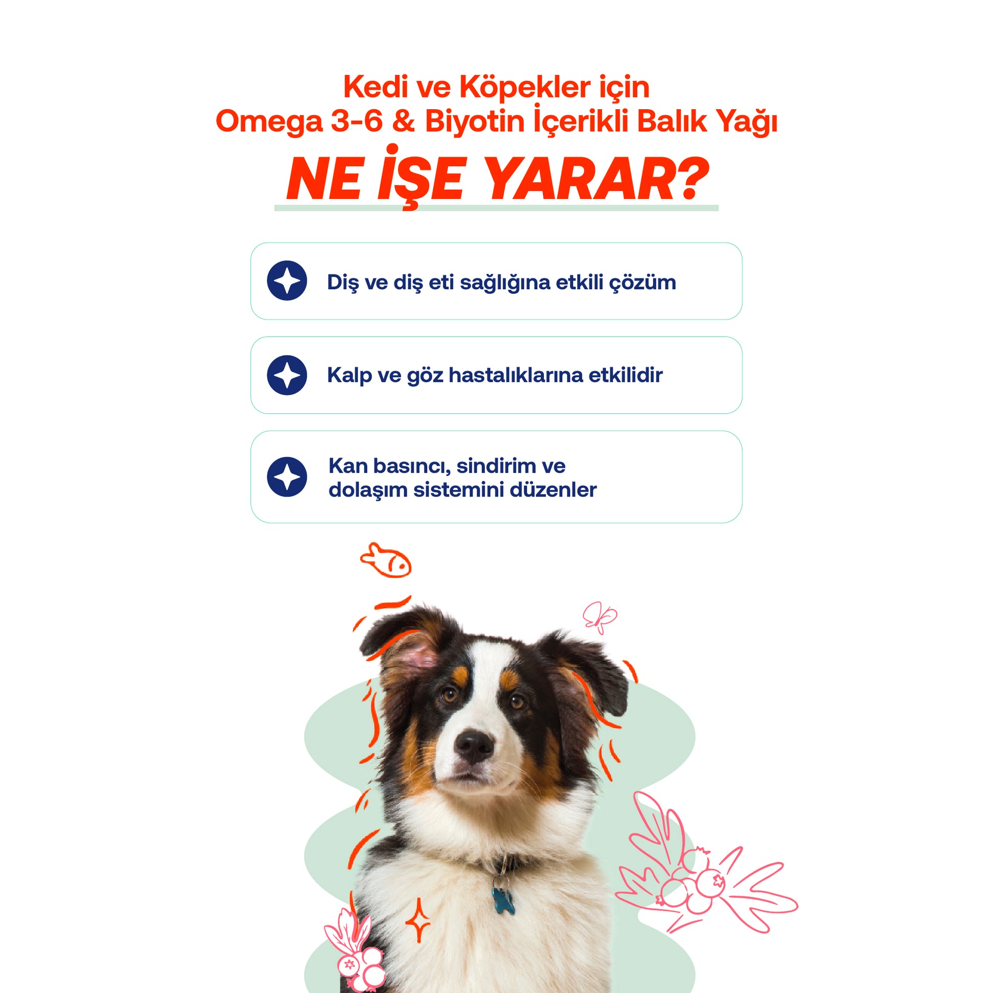 - Evcil dost için: daha parlak ve daha bakımlı tüy görünümü odağını destekler