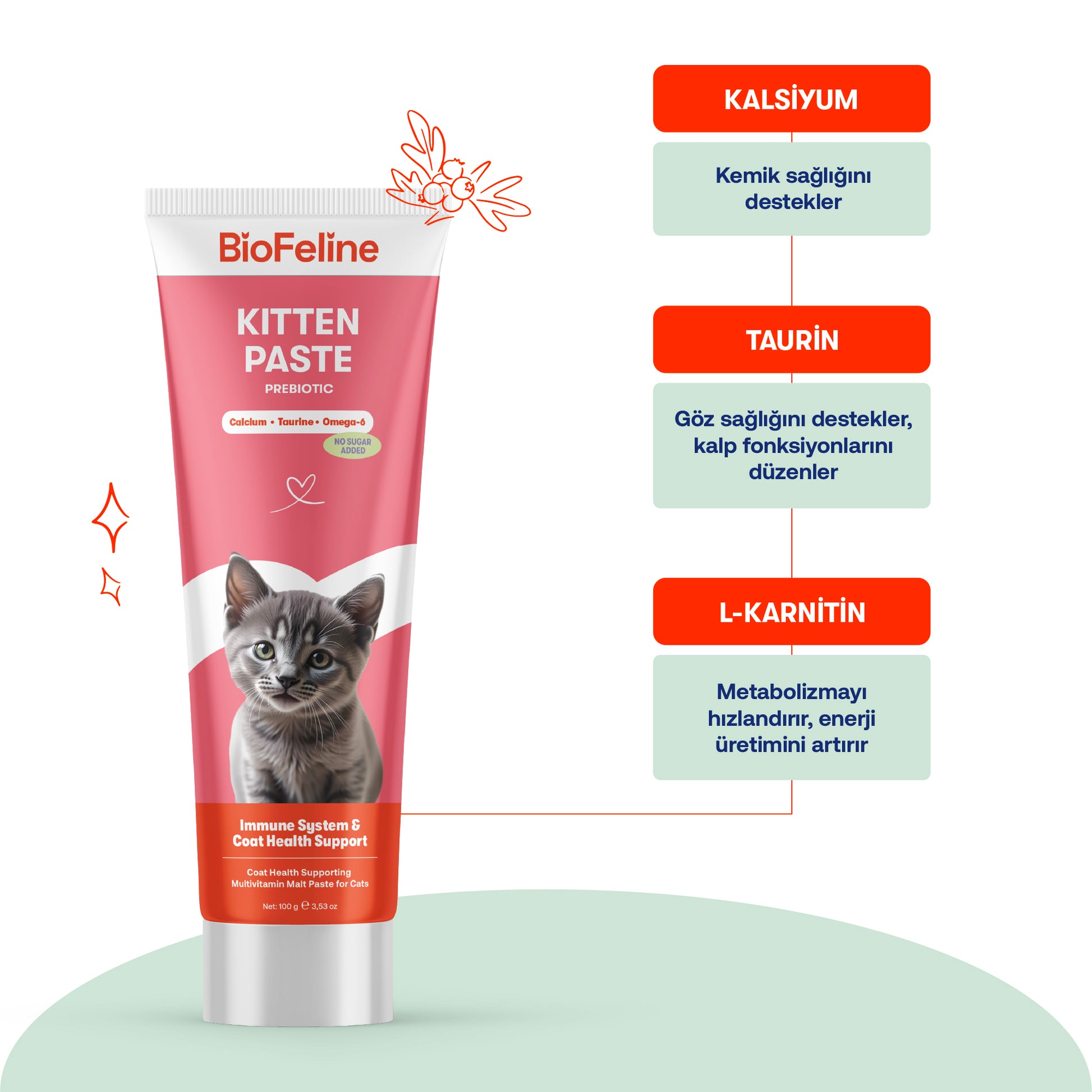 Veteriner hekim onaylı formülü ile Biofeline Multivitamin Macun, yavru ve anne kedilerde sağlıklı bir büyüme ve güçlü bağışıklık için ideal destek sunar.