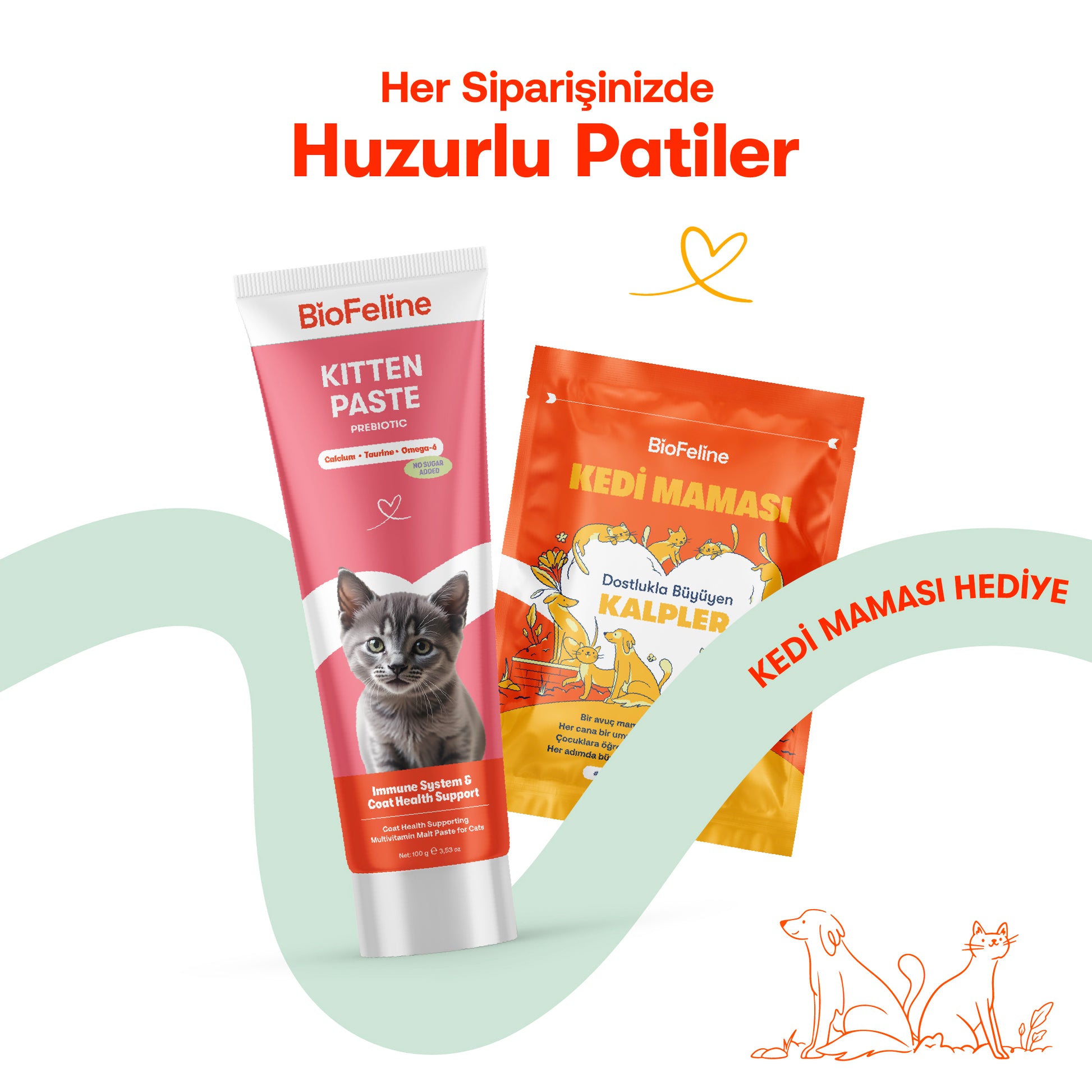 Biofeline Yavru ve Anne Kediler İçin Bağışıklık Destekleyici Multivitamin Macun, yavru kedilerin sağlıklı gelişimi ile hamile ve emziren anne kedilerin artan vitamin ve mineral ihtiyaçlarına özel olarak geliştirilmiş bir bakım ürünüdür. Taurin, Omega 6, L-Karnitin ve zengin vitamin içeriği ile bağışıklık sistemini destekler, kas, kemik ve diş gelişimine katkı sağlar. Doğal ve güvenli içeriği sayesinde yavru ve anne kediler için düzenli kullanıma uygundur.